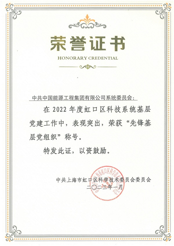 會議的最后,對虹口區科技系統基層黨建工作中表現突出的黨組織進行了表彰,中國能源工程集團有限公司系統黨委榮獲2022年度“先鋒基層黨組織”榮譽稱號。